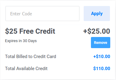 - Create new account from the $25 promotion page, and receive free $25 credit.